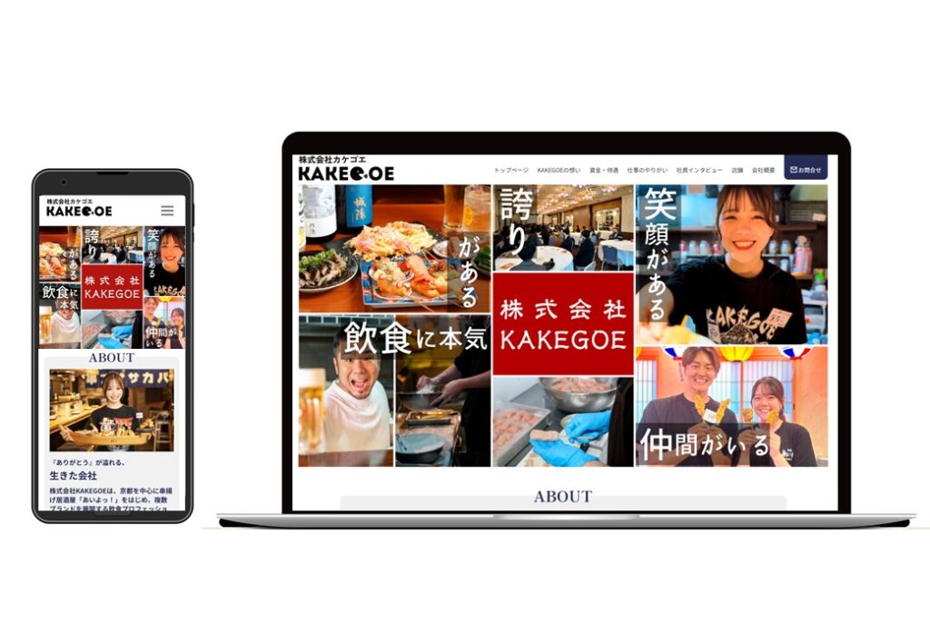 サイト制作 ホームページ制作【株式会社KAKEGOE様】 京都で17店舗運営する人気串揚げ店「あいよっ!」などを運営するグループ「株式会社カケゴエ」様の企業サイトの制作担当しております。 各店舗の最新情報更新、企業コンセプト、求人概要など詳しく掲載しております。 サイトはこちら